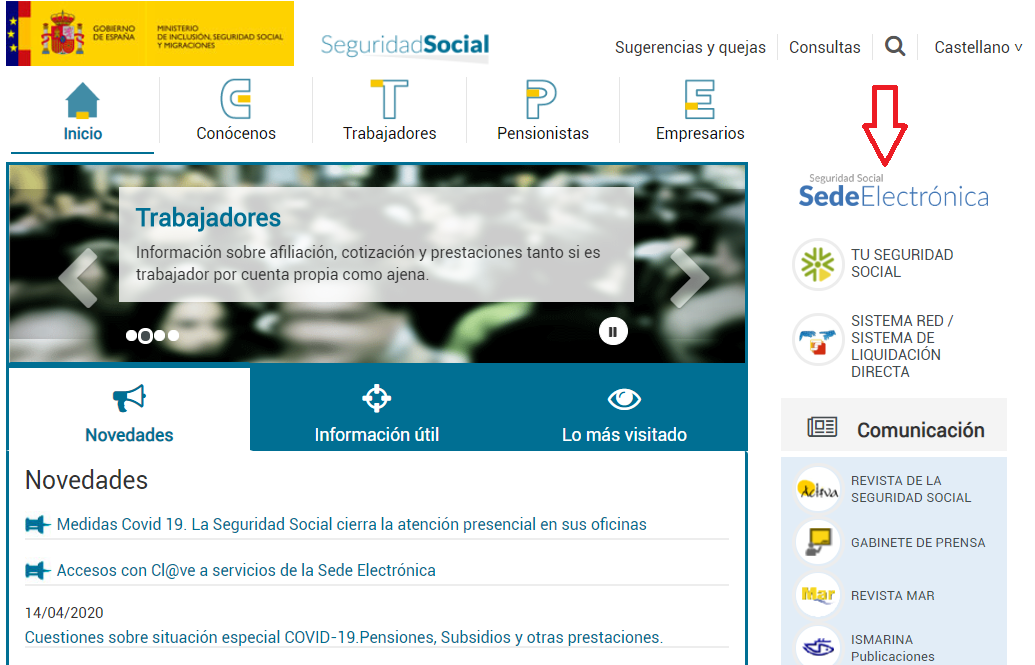 1.- Entramos en la web de la Seguridad Social