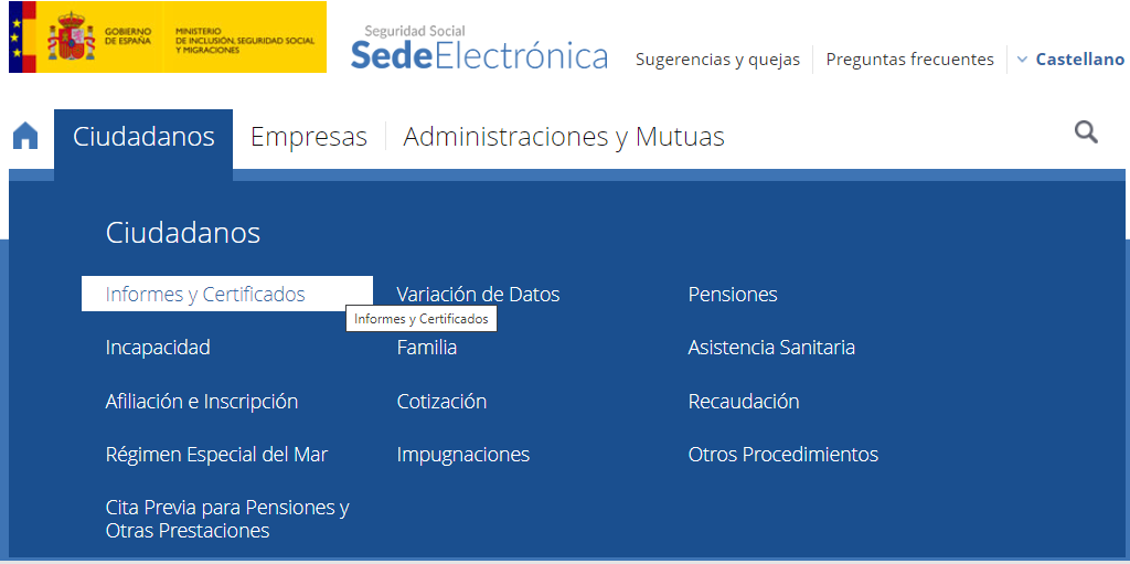 3.- Después, dentro de ciudadanos elegimos informes y certificados
