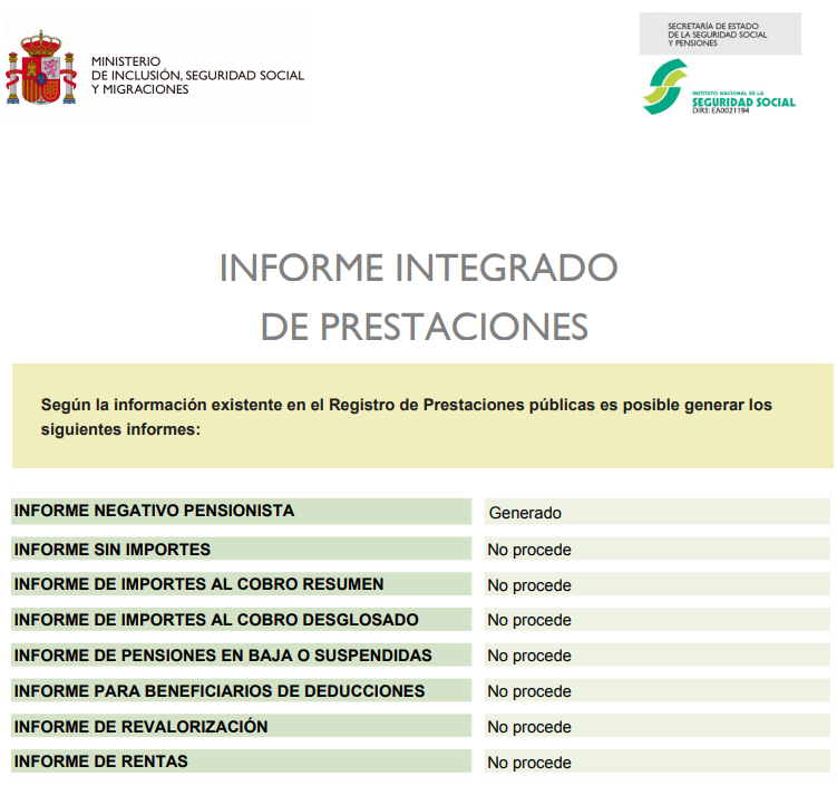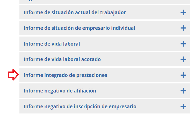4.- Ahora tenemos que buscar, de entre todos los tipos de informes, el que pone “Informe integrado de prestaciones”