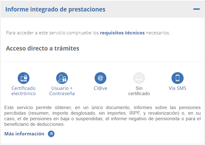 3.- En la pantalla que nos sale ahora tenemos que decidir, a través de qué forma podemos obtener el informe de mis prestaciones