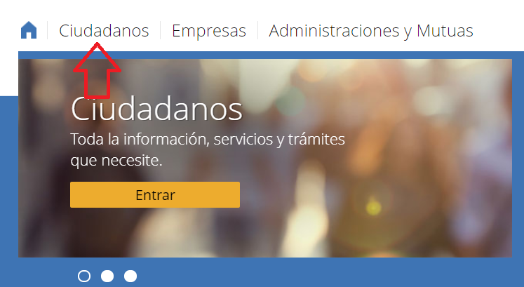 2.- Una vez dentro de la Sede Electrónica tenemos que ir a donde pone Ciudadanos y seleccionarlo tal y como se muestra en le dibujo