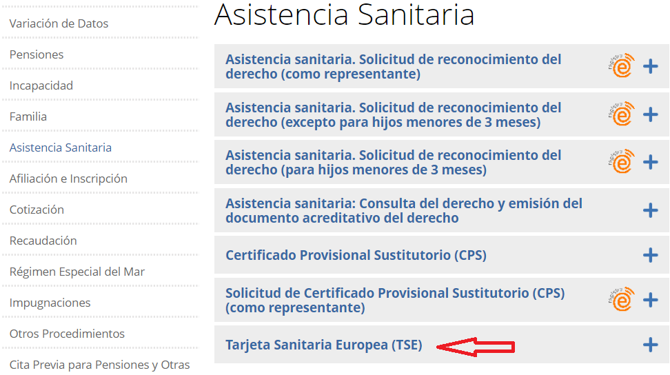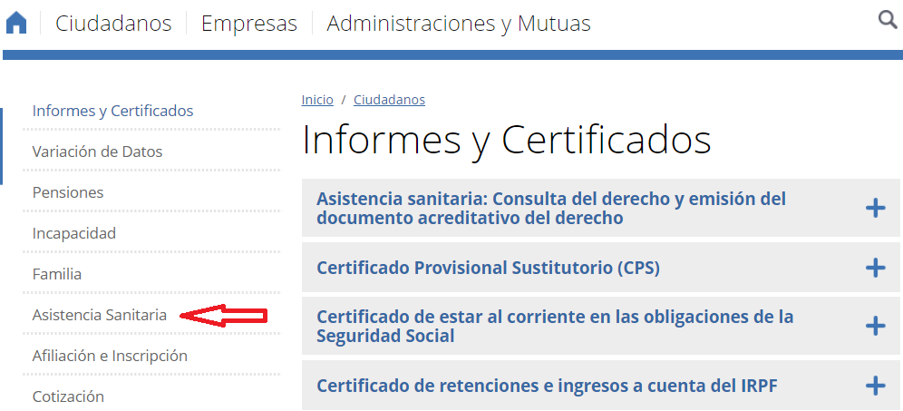 4.- De la columna de la izquierda seleccionamos ‘Asistencia sanitaria’