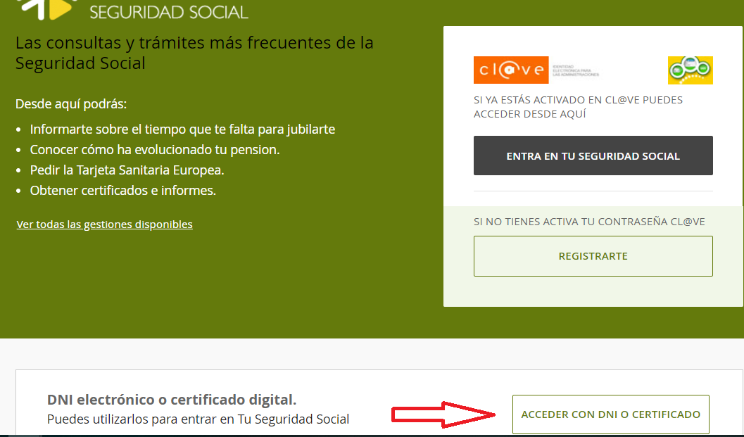 Bueno pues si seleccionamos con certificado digital, automáticamente se nos abre el portal Tu Seguridad Social, una vez dentro si bajamos un poco nos aparece la opción de seleccionar DNI o Certificado. Nos pedirá que seleccionemos el certificado en caso de tener varios.