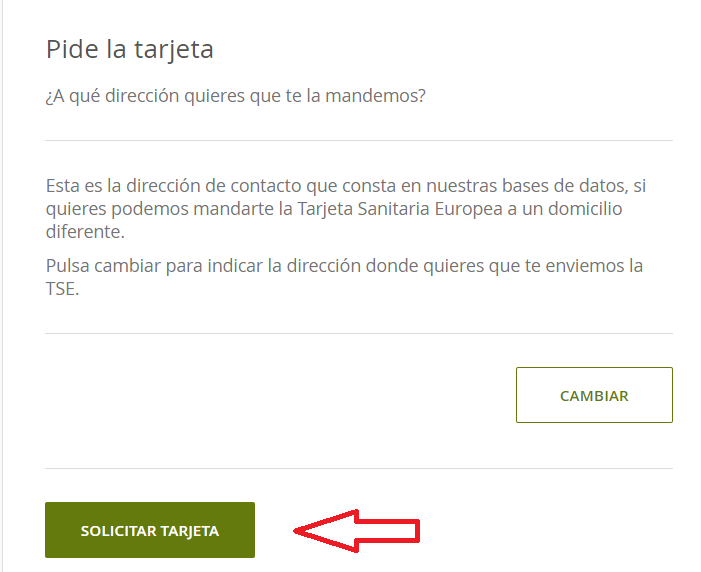 7.- Por último, buscamos tarjeta sanitaria europea y pulsamos en solicitar tarjeta y listo.