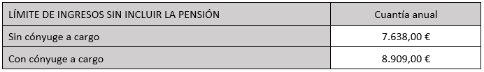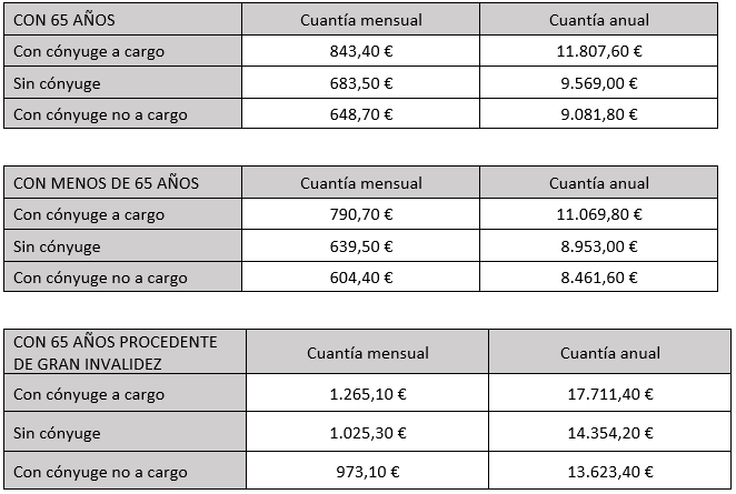 Cuantías mínimas para poder optar a recibir el complemento por mínimos:
