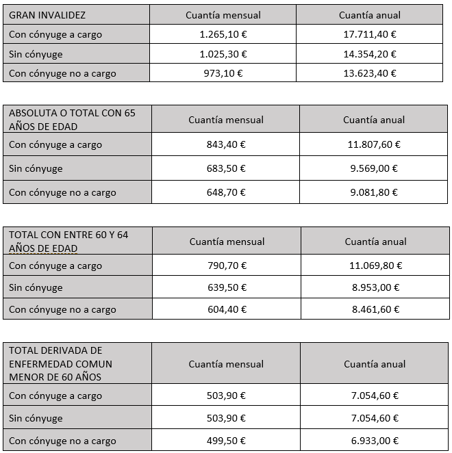 Cuantía mínima a percibir por Incapacidad Permanente: