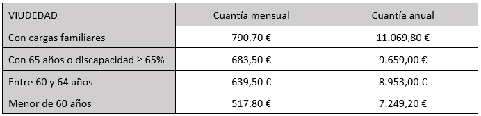 Cuantía mínima a percibir por Viudedad: