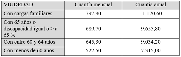 Cuantía mínima a percibir por Viudedad: