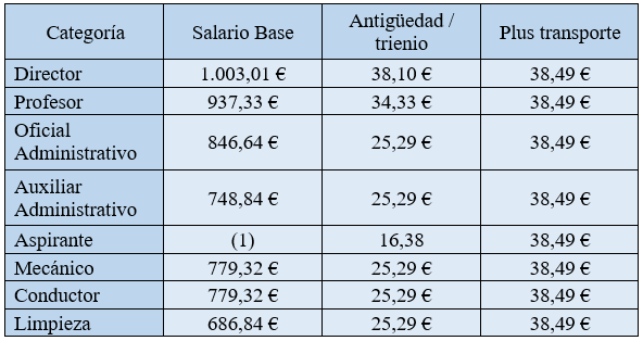 (1)La retribución para la categoría de aspirante será la equivalente para los contratos de formación