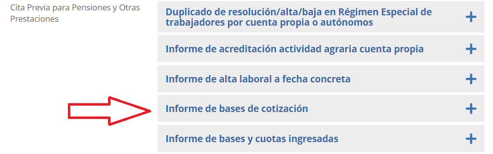 4.- De todo el desplegable que nos aparece ahora nos fijamos en la columna de la derecha y buscamos donde pone “Informe de bases de cotización”