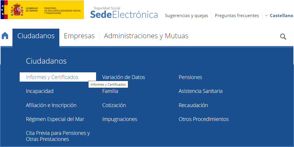3.- Después dentro de Ciudadanos elegimos informes y certificados