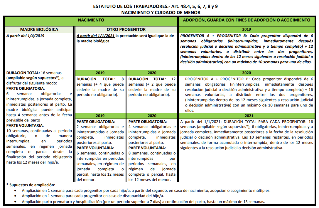 La idea es que a partir del 1.1.2021 cada progenitor podrá disfrutar de el mismo periodo de suspensión, esto es, 16 semanas ampliables en algunos casos