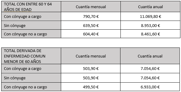 Por ley se establecen unas cuantías mínimas mensuales, así que para el año 2021 la cuantía mínima garantizada para la incapacidad permanente total es la siguiente: