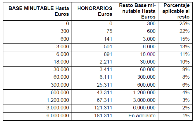 Aquí me voy a remitir a lo que dice el baremo orientador del Colegio de Abogados de Granada.